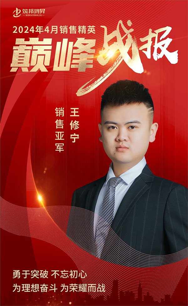 4月份,筑邦鴻昇又迎來了一場銷售的盛宴,我們的銷售團隊在過去的4月份再次創(chuàng)造了輝煌,讓我們一同為銷售部精英取得的杰出成績喝彩。值此良機,我們向大家介紹我們銷售部4月銷售業(yè)界的前三甲——冠軍康納輝、亞軍王修寧和季軍康治輝,他們的奮斗和成就展示了我們企業(yè)全心全意服務客戶的承諾和精神,同時也是我們全體銷售部成員的榜樣和鼓舞!