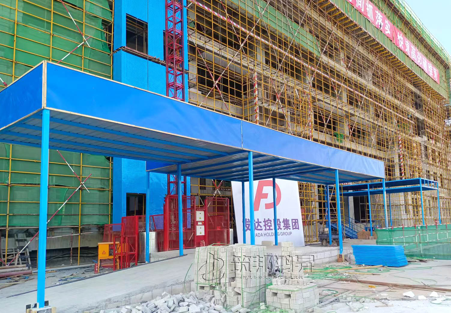 此次合作的安全標(biāo)化產(chǎn)品還包括了樓層防護門、人貨電梯防護棚等設(shè)備。筑邦安排專車送貨到江西工地,同時安排了專業(yè)人手迅速到工地加班加點完成安裝。