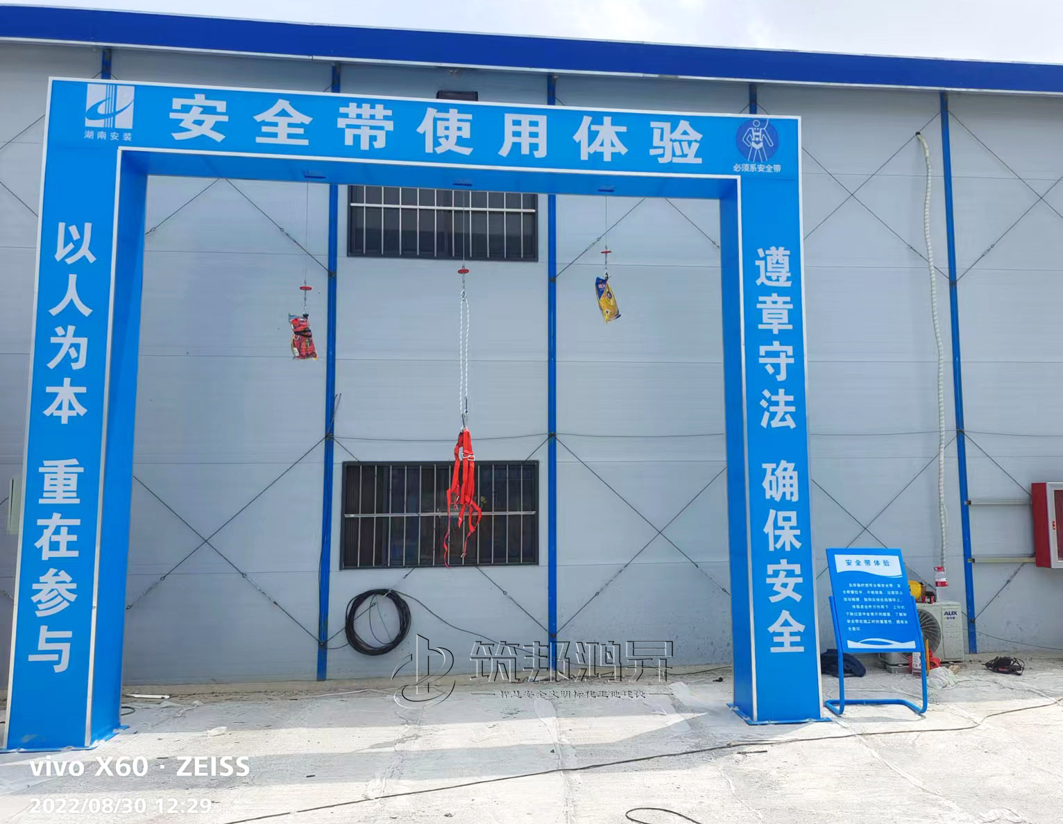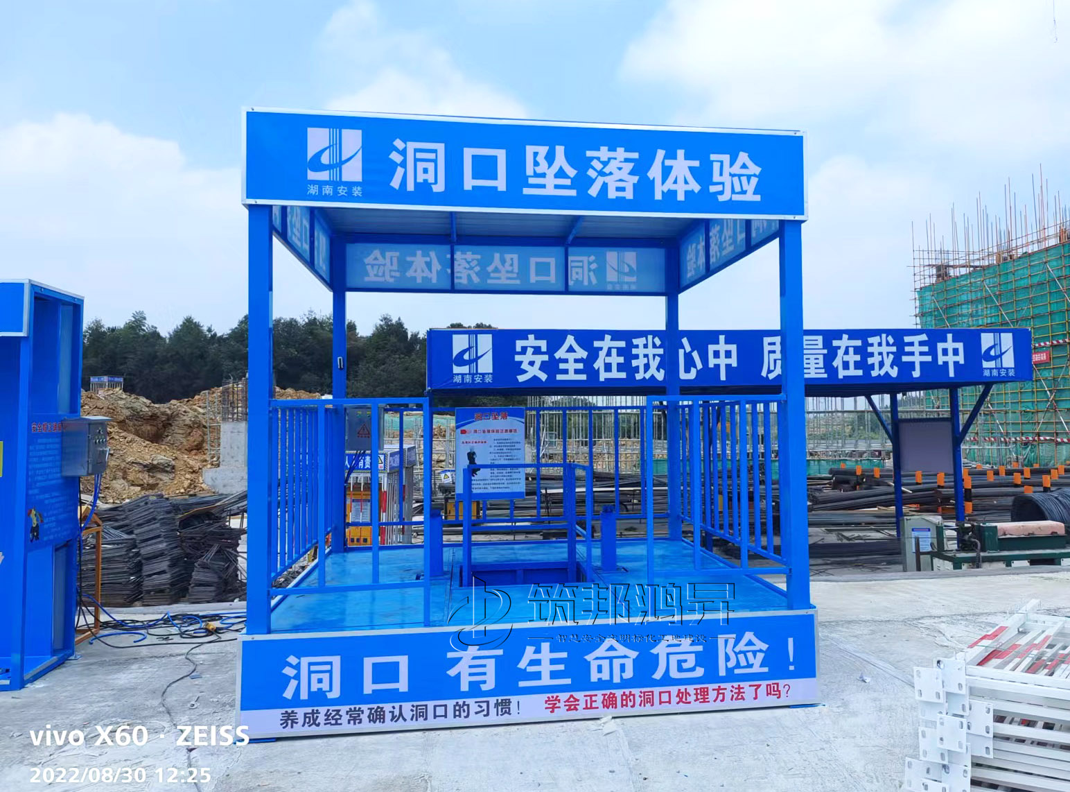 此次合作的安全教育培訓體驗區(qū)建設(shè)包括了綜合用電體驗、安全帽撞擊體驗、班前安全講評臺、平衡木體驗、安全帶使用體驗、滅火器演示體驗、洞口墜落體驗等。標準款采用鋼結(jié)構(gòu)組裝式設(shè)計,高溫烤漆不易褪色,顏色鮮艷更美觀,設(shè)計制作安裝一站式服務(wù)。筑邦安排專車送貨到工地,同時安排專業(yè)的安裝團隊從長沙來到邵陽工地現(xiàn)場,進行專業(yè)安裝。
